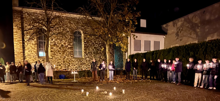 Am Abend des 9. November haben auch in diesem Jahr zahlreiche Schülerinnen und Schüler des Kurfürst-Balduin-Gymnasiums der vertriebenen und ermordeten jüdischen Mitbürger in Münstermaifeld gedacht. Im Mittelpunkt des Gedenkens stand in diesem Jahr Edith Bender, eine junge Münstermaifelderin, die mit 16 Jahren ermordet wurde.
