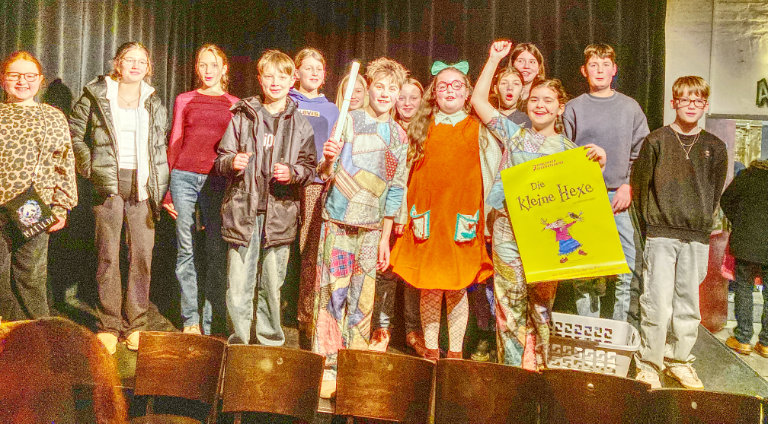 Zum Abschluss des ersten Schulhalbjahres traf sich eine große Gruppe aus Schülerinnen und Schülern unserer Unterstufen-Theater-Ag samt Familien in der Kulturfabrik in Koblenz ein, um gemeinsam die Aufführung des Stücks „Die kleine Hexe“ zu bestaunen. Das Koblenzer Jugendtheater setzte den auf dem Buch von Otfried Preußler beruhenden Stoff in beeindruckender Art und Weise um, und zwar in Form eines Ensembles bestehend aus 15 jungen Darstellerinnen und Darstellern im Alter zwischen elf und fünfzehn Jahren. Der Kampf der kleinen Hexe für das Gute wurde dabei nicht nur durch ein abwechslungsreiches Bühnen- und Lichtbild eindrucksvoll inszeniert, sondern auch die schauspielerische Leistung inklusive Gesang und Tanz sorgte für verblüffte Gesichter im Publikum. Ob beim abschließenden Foto unserer Schülerinnen und Schüler mit einzelnen Schauspielerinnen und Schauspielern noch ein paar Tipps und Tricks ausgetauscht wurden, werden wir spätestens bei der Aufführung unserer Unterstufen-Theater-Ag am Ende des Schuljahres erfahren…